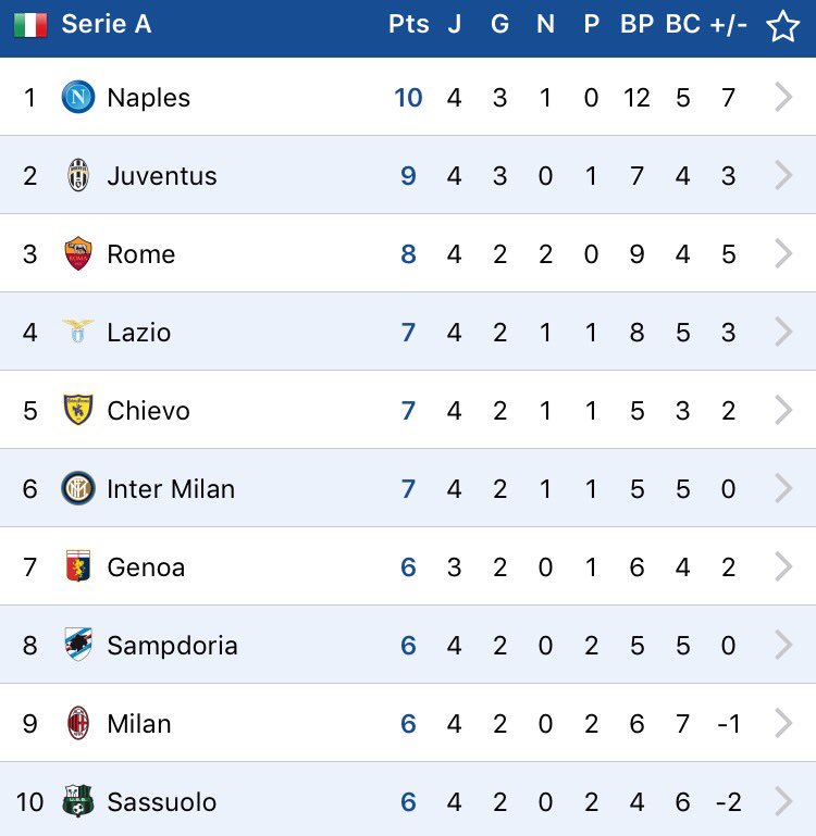 Ce succès relance le championnat, puisqu'après trois victoires d'affilée pour commencer, la Juventus semblait déjà lancée vers un nouveau scudetto. Mais c'est finalement Naples qui prend les commandes, avec 10 points, soit un de plus que la Juve, en attendant le match de l'AS Rome en clôture de cette 4e journée dimanche soir.
